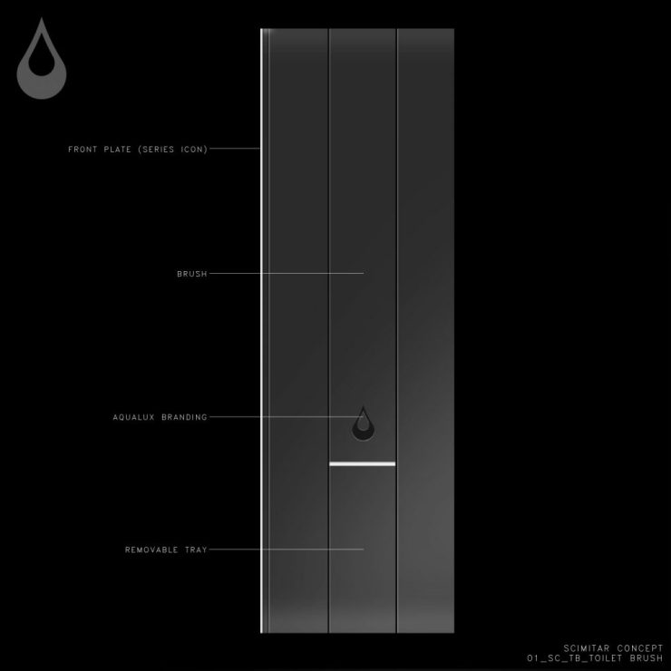 Conceptual design of high end bathroom accessories for the Aqualux brand. Emphasis lies on the thinness of the series, giving it an unique appearance. Aluminium. Packaged as a set (50 pieces).